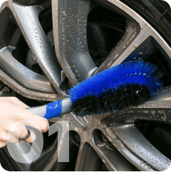 Realizamos un lavado con solventes especiales para eliminar grasa y residuos, asegurando una limpieza profunda para evaluar el estado general de la llanta.