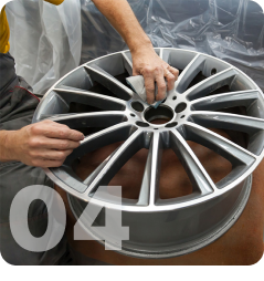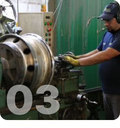 Soldamos las áreas desgastadas y realizamos el torneado para corregir deformaciones, devolviendo a la llanta su forma original.