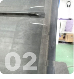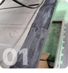 La acumulación de residuos roza con el soporte plástico, desgastando la lona. Realizamos un pulido y reparación, respetando el espesor original de la lona para asegurar su durabilidad.