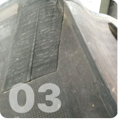 Este daño se presenta en lonas sin unión. Reparamos puliendo la lona y aplicando un parche de caucho, manteniendo el espesor original para garantizar su resistencia y rendimiento.
